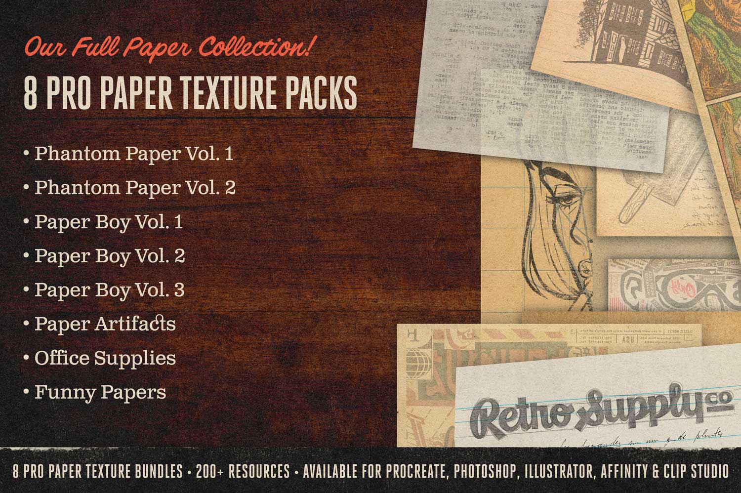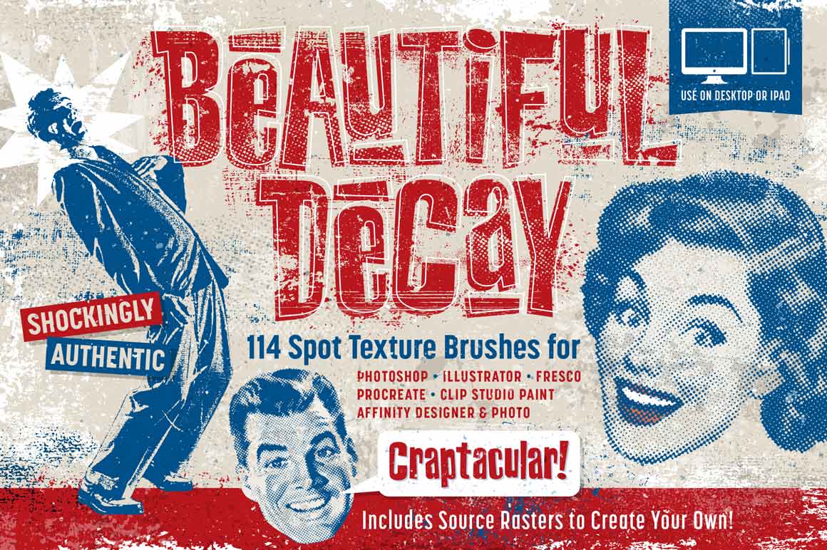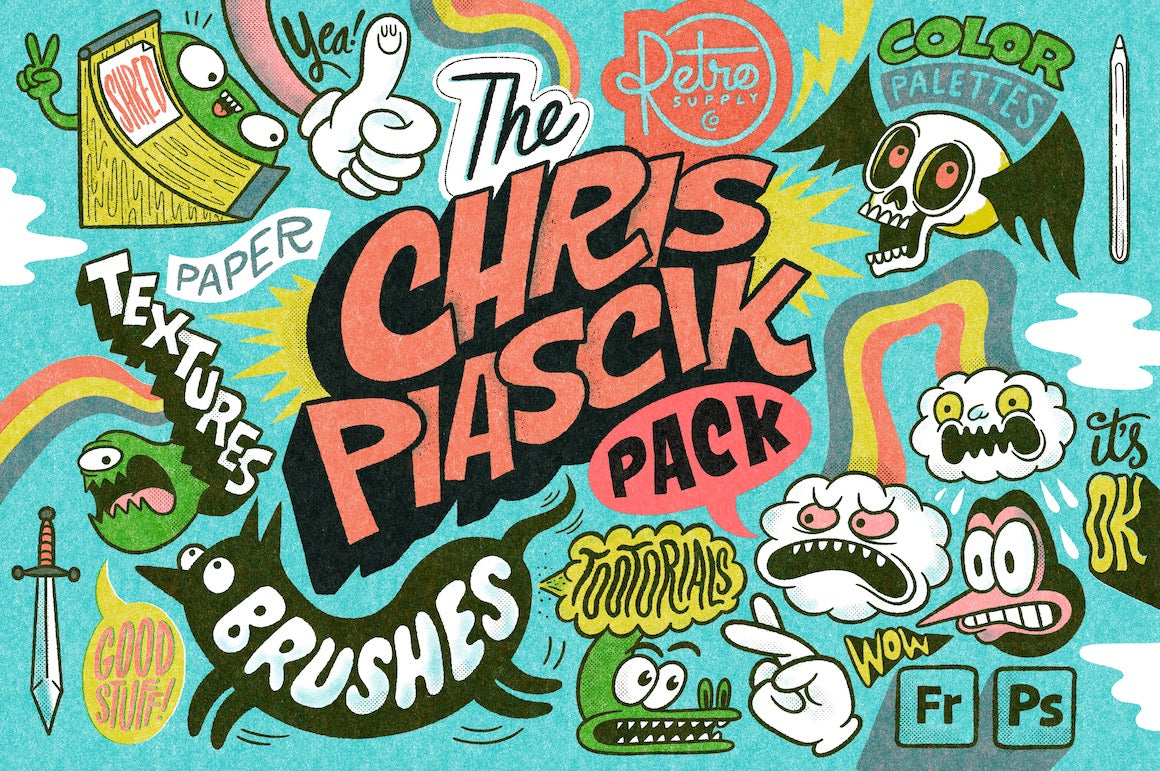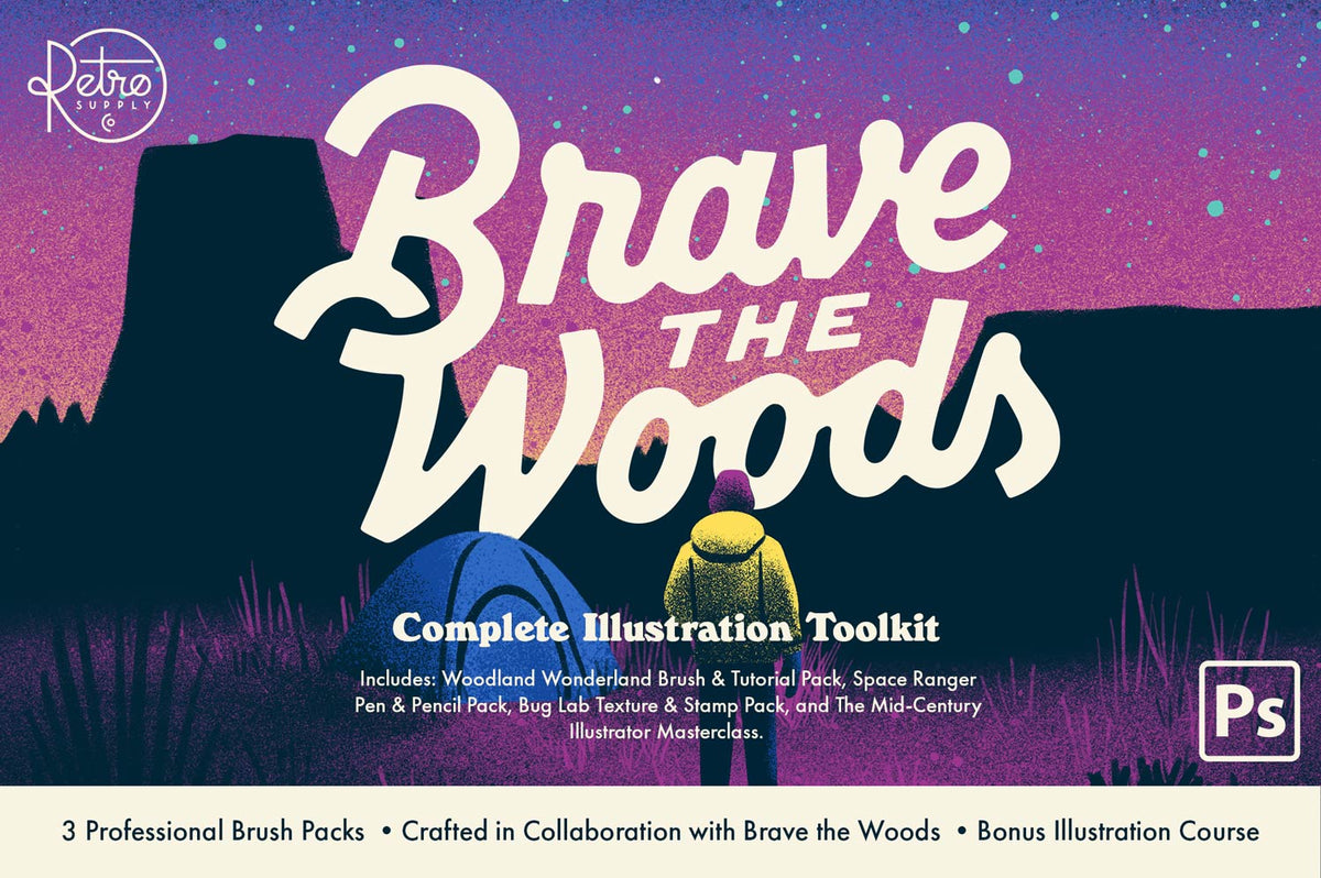 Bring your digital art to life (and back in time) with RetroSupply's line of brushes, bundles, textures, templates, and actions for Adobe Photoshop. Wheather you're a novice artist just learning the ropes, or an O.G. digital drawing mastermind looking for that one-of-a-kind look for a certain project, we've got a slew of killer Photoshop products ready to be your wingman.