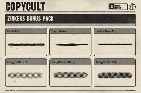 Copy Cult for Affinity is a Xerox-fueled texture and brush kit built for illustrators and designers who crave the gritty charm of analog print. Inspired by punk zines, horror comics, and copy shop sabotage, this pack delivers high-impact textures and brushes all optimized for Affinity Pixel Studio.