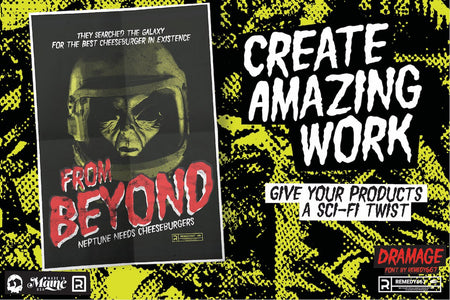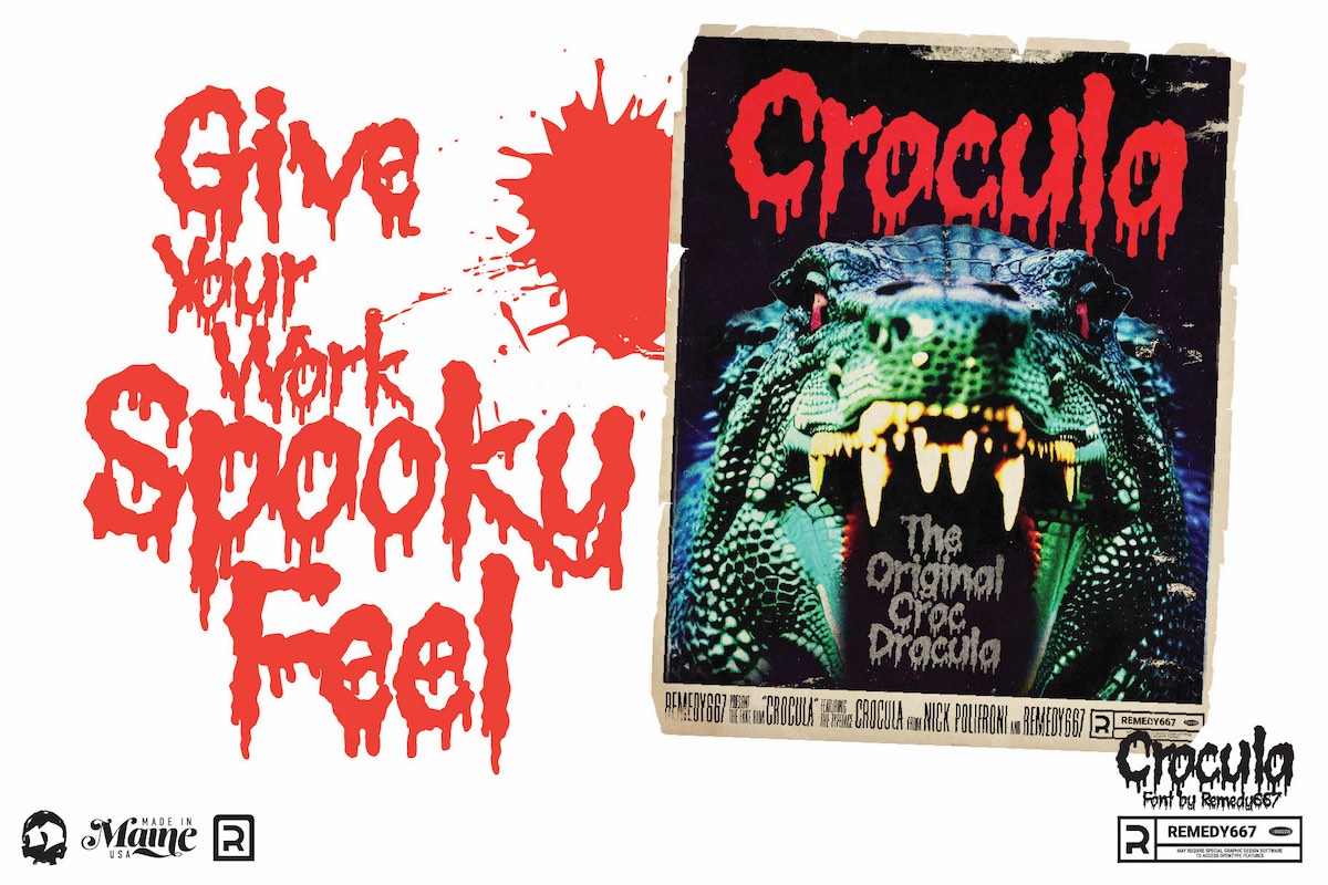 It’s got that perfect retro-horror vibe, but it’s not gimmicky; you can dial it up for campy monster-movie posters or keep it subtle for something more vintage-cool.