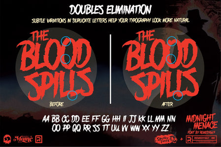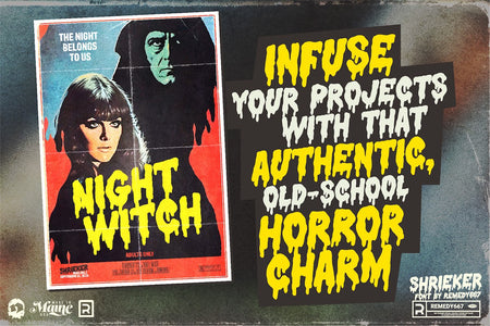 • Includes 9 Fonts Inspired by Horror & B-Movies: Each font conjures a different subgenre, from occult slasher flicks to haunted house VHS covers.