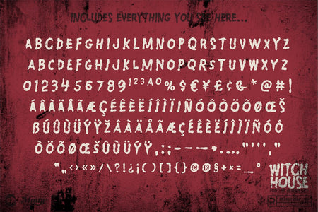 • Fonts Included: Burger Witch, Crocula, Dracula Vibes, Enchanted Chainsaws, Gore Girl, Midnight Menace, Shrieker, Tragro 2, Witch House