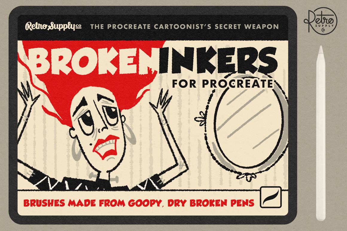 Our Broken Inkers brush set let your digital workflow be as free as the runny ink in an old fountain pen. Explore the limitless possibilities of organic, drippy, dribbling ink pens at your fingertips with just one brush set! Available for Procreate, Photoshop, Illustrator, and Affinity Designer, and Affinity Photo.